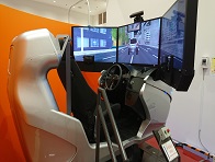 3画面ドライビングシミュレータは、(株)フォーラムエイト製 UC-win/Roadドライビングシミュレータを導入し、フルハイビジョン、コクピットモジュール、小振幅応答電動モーション、音響装置、ソフトウェアで構成しています。