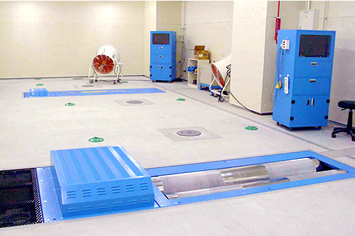 駆動輪をローラー上で回転させ路上走行を再現し、速度,距離,加速,エンジン出力,JC08モード燃費測定等ができます。