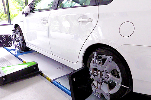 アライメント測定・調整装置は、ホイールアライメントテスター(FWA4630)、 キャンバー・キャスター・キングピンゲージ(HG-201)、ターニングラジアスゲージ(MB-33K)、 リアルスリッププレート(MB-75SP)、車両重量計(PW-4LR)及びマルチアライメントリフト(MUS30HU)で構成しています。