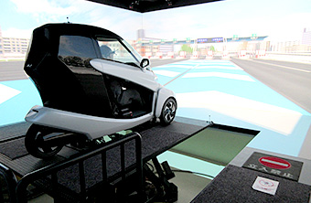 3次元高精細VR空間に作られた街をコクピットに搭乗して運転する状況を再現し、目的に応じたシナリオを元に、各年代層における市街地路面での運転時のトライバー特性を詳細に記録することができる。